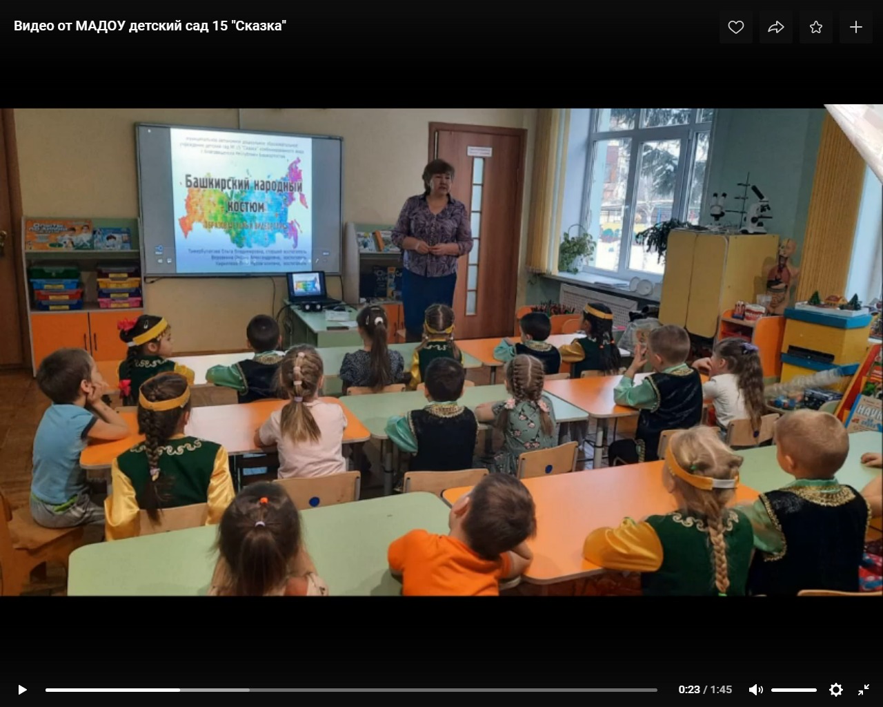 Дети просмотрели обучающий видеоролик о башкирском национальном костюме, слушали песни о родном Башкортостане, рассказывали стихи, играли в башкирские народные игры. Малышам очень понравилось здороваться и прощаться на государственном башкирском языке.