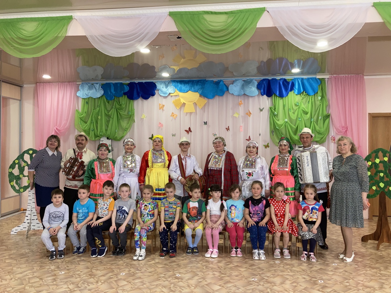В рамках плана мероприятия, посвященных Году национального культурного наследия народов России 2022, в нашем детском саду 12 апреля прошло мероприятие для воспитанников "Марийский край, ты часть моей России". Дети познакомились с культурой, традициями и обычаями марийского народа. Ярким и запоминающимся это мероприятие стало благодаря приглашенным гостям- Народному марийскому фольклорному ансамблю Онгырйук(колокольный звон). Они исполнили веселые песни своего народа, подарили всем детям и взрослым море позитива. Воспитанники детского сада познакомились с марийскими музыкальными инструментами и национальной одеждой. Закончилось мероприятие зажигательным мастер- классом для детей от гостей "Марийская верёвочка".